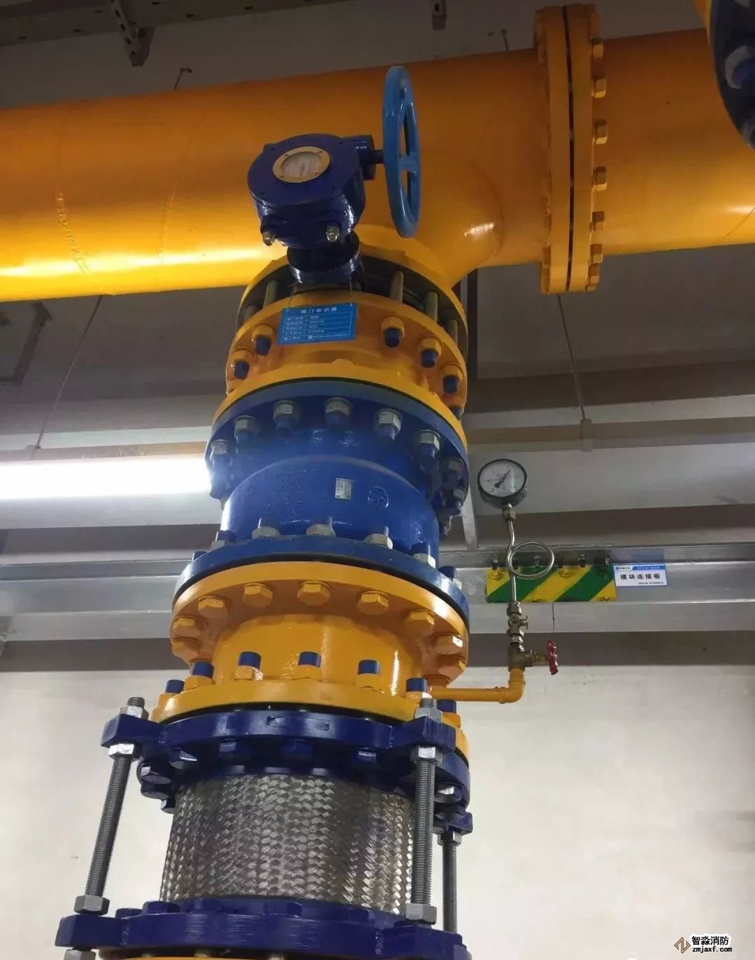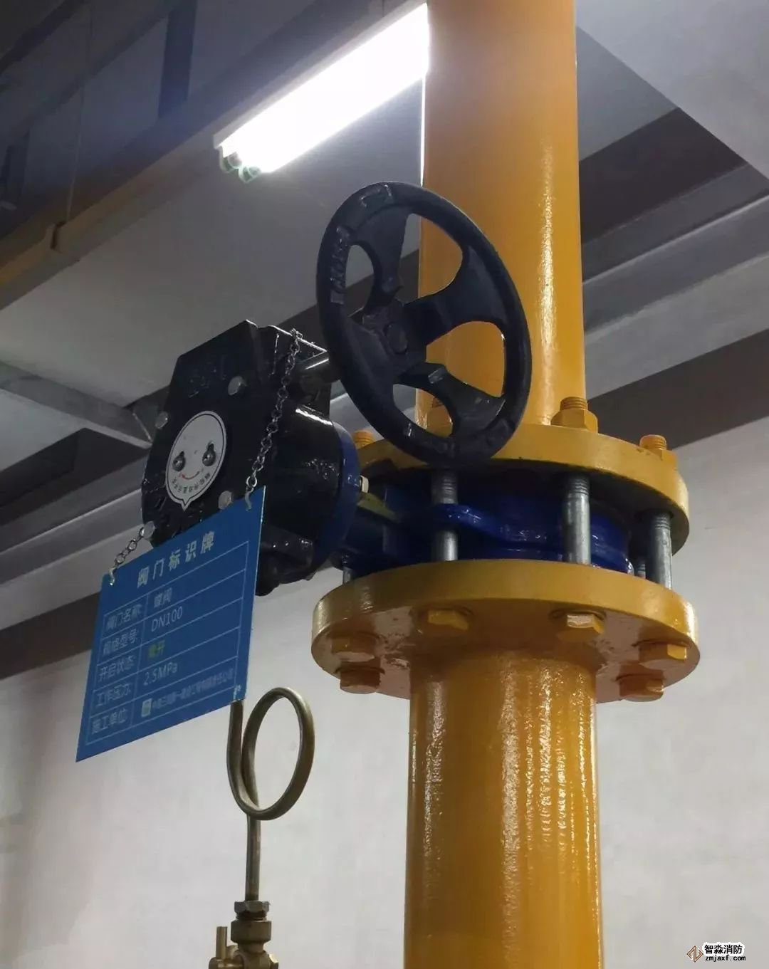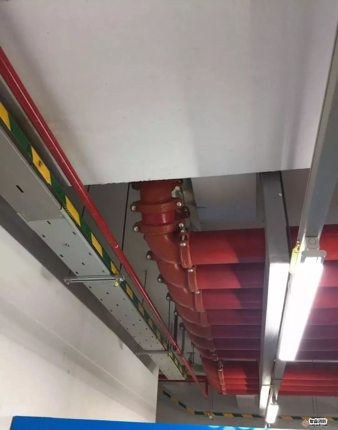 消防噴淋管道間距一致,標(biāo)識清楚、成排成線。