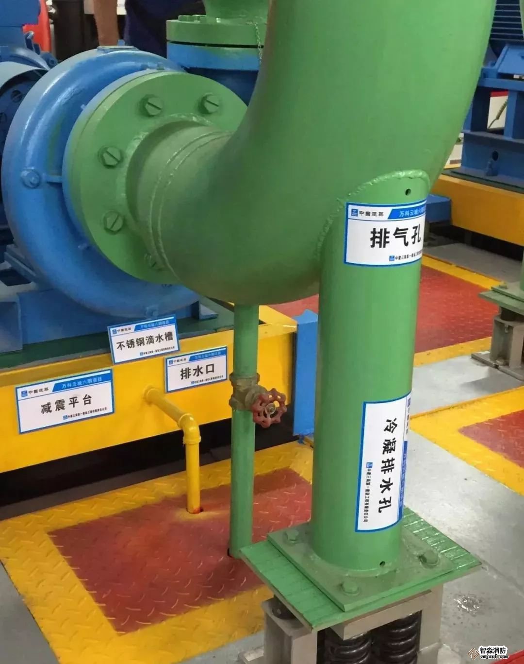 水泵減震、限位裝置布置合理,科學(xué)實(shí)用。
