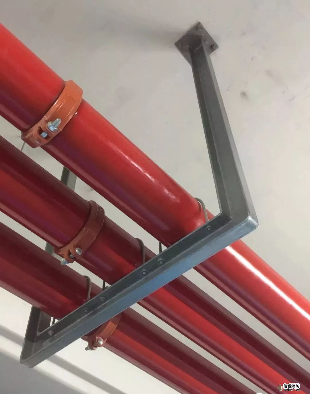 噴淋支管橫平豎直,標(biāo)識清楚、支架布置間距合理。