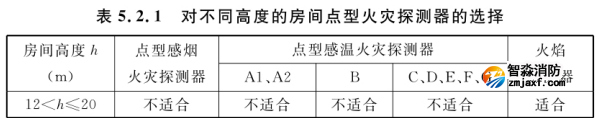 5.2.1 對(duì)不同高度的房間,可按表5.2.1選擇點(diǎn)型火災(zāi)探測(cè)器。