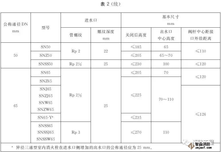 室內(nèi)消火栓的進水口應為圓柱管螺紋,其進水口的螺紋尺寸應符合表3的規(guī)定;閥桿與閥桿螺母應為梯形螺紋。