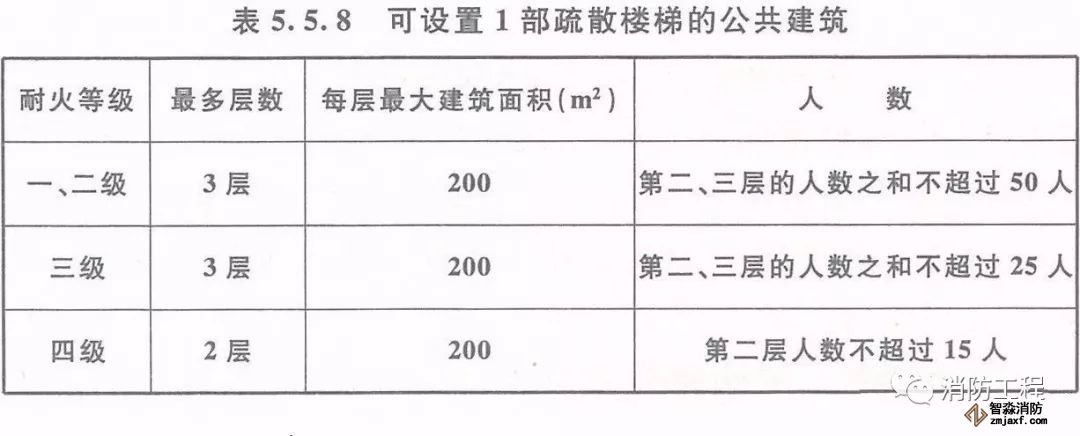 5、除兒童活動場所以及托兒所、幼兒園的兒童用房外,符合《建筑設(shè)計防火規(guī)范》表 5.5.8 規(guī)定的公共建筑,可以設(shè)置 1 個安全出口。(5.5.8)