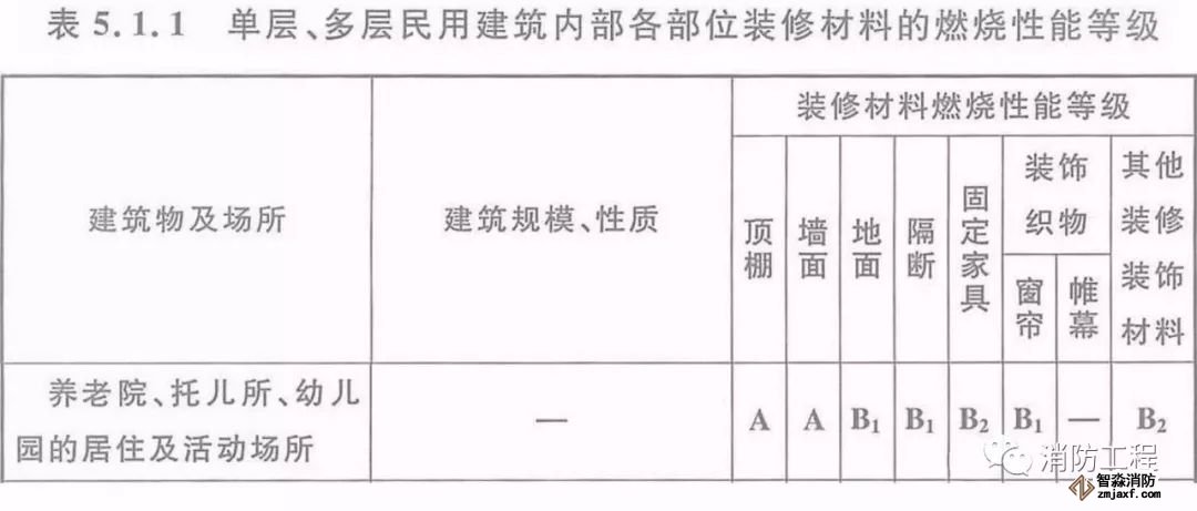 1、當(dāng)設(shè)置在單層、多層民用建筑時,內(nèi)部各部位裝修材料的燃燒性能等級,不應(yīng)低于《建筑內(nèi)部裝修設(shè)計防火規(guī)范》5.1.1的規(guī)定。