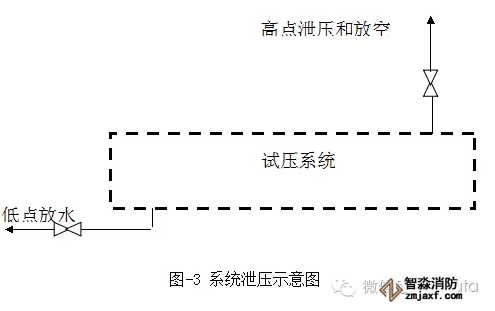 6.5.2管道系統(tǒng)試壓合格后進(jìn)行泄壓排水時(shí),必須先開啟管道系統(tǒng)高點(diǎn)的復(fù)位放空閥,在系統(tǒng)無壓力后,仍開高點(diǎn)放空閥,然后打開系統(tǒng)最低點(diǎn)的排水閥進(jìn)行系統(tǒng)排水(見圖-3),將系統(tǒng)水排到指定地點(diǎn)。