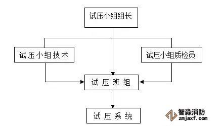 試壓時(shí)成立專門的試壓小組,試壓小組設(shè)組長一人,試壓時(shí)聽從組長指揮,試壓組織方塊圖如下: