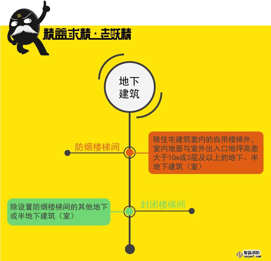 除住宅建筑套內(nèi)的自用樓梯外,室內(nèi)地面與室外出入口地坪高差大于10m或3層及以上的地下、半地下建筑(室)。