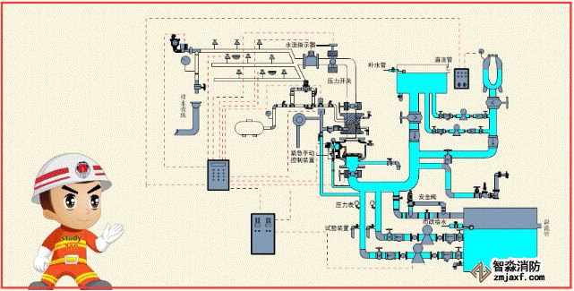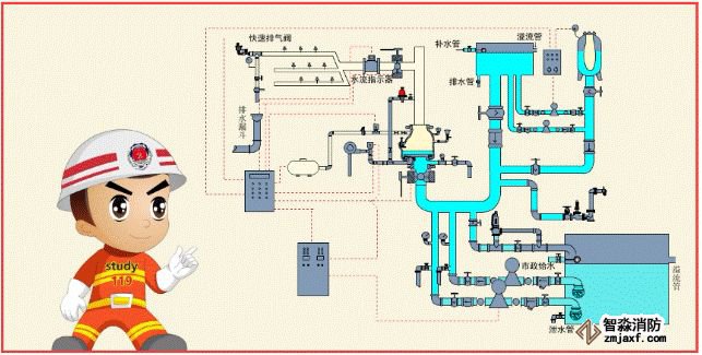 配置供給泡沫混合液的設備后,組成既可噴水又可以噴泡沫的自動噴水-泡沫聯(lián)用系統(tǒng)。
