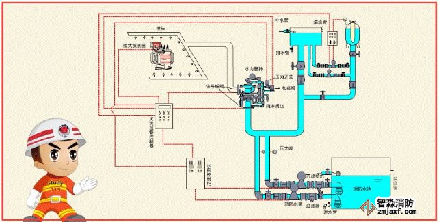 預作用系統(tǒng)與濕式系統(tǒng)、干式系統(tǒng)的不同之處,在于系統(tǒng)采用雨淋閥,并配套設置火災自動報警系統(tǒng)。