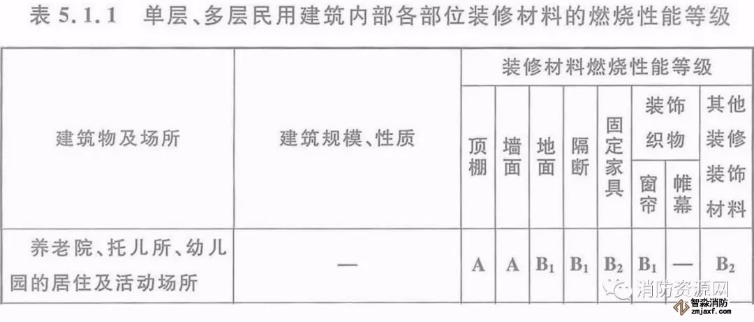 一、當設置在單層、多層民用建筑時,內部各部位裝修材料的燃燒性能等級,不應低于《建筑內部裝修設計防火規(guī)范》5.1.1的規(guī)定。