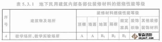 六、培訓(xùn)班設(shè)置在地下民用建筑時(shí),內(nèi)部各部位裝修材料的燃燒性能等級(jí),不應(yīng)低于《建筑內(nèi)部裝修設(shè)計(jì)防火規(guī)范》5.3.1的規(guī)定,參照“教學(xué)場所”執(zhí)行。