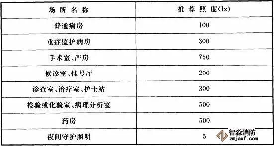 2、照明設(shè)計應(yīng)采用高能效、高顯色性光源。醫(yī)療場所照明燈具的設(shè)置應(yīng)避免對臥床患者產(chǎn)生眩光,宜采用漫反射型燈具。傳染病醫(yī)院照度宜符合下表1的要求。