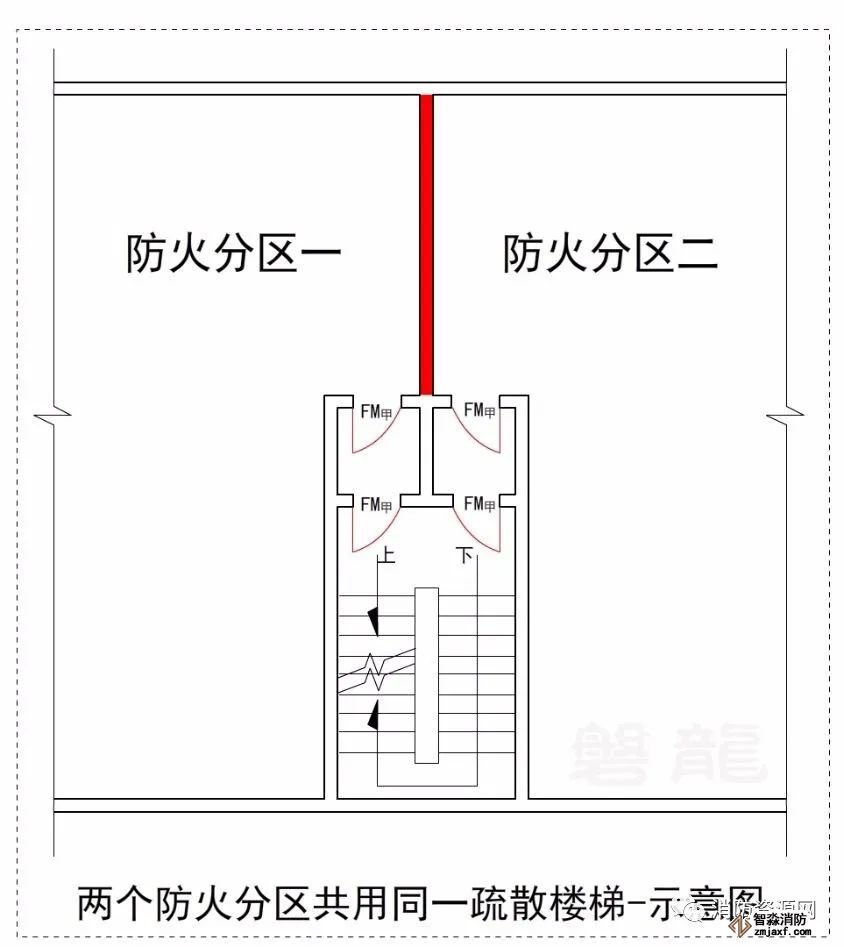 3.3 三個及以上防火分區(qū)不得共用同一部疏散樓梯。兩個防火分區(qū)共用疏散樓梯時應分別設(shè)置前室,并應符合防煙樓梯間的設(shè)置要求,開向前室的門應為甲級防火門。