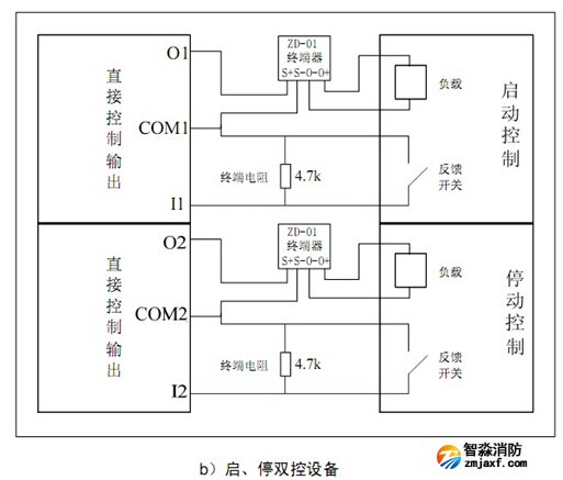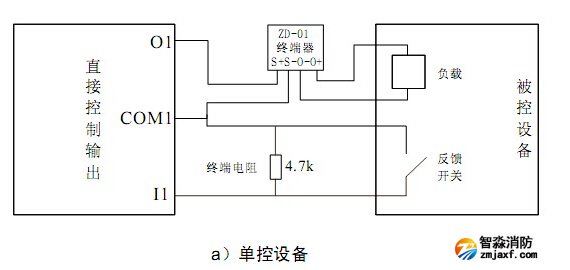 GST-LD-KZ014直接控制輸出與外部被控設(shè)備連接(GST-LD-KZ014控制盤(pán)與ZD-01終端器配合使用)如圖所示: