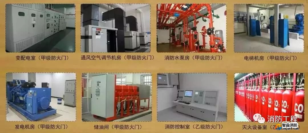 重要設(shè)備間需要設(shè)置防火門,以保護設(shè)備安全,常用的設(shè)備間有:變配電室(甲級)、通風空氣調(diào)節(jié)機房(甲級)、消防水泵房(甲級)、電梯機房(甲級)、發(fā)電機房(甲級)、儲油間(甲級)、消防控制室(乙級)、滅火設(shè)備室(乙級)。