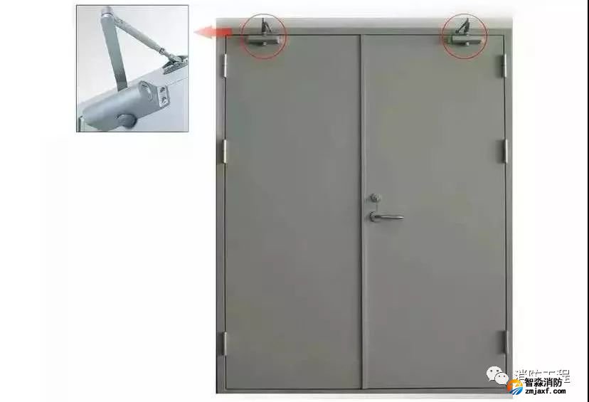 雙扇防火門應(yīng)具有按順序自行關(guān)閉的功能,通過順序器來實現(xiàn)。