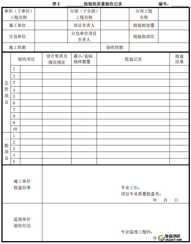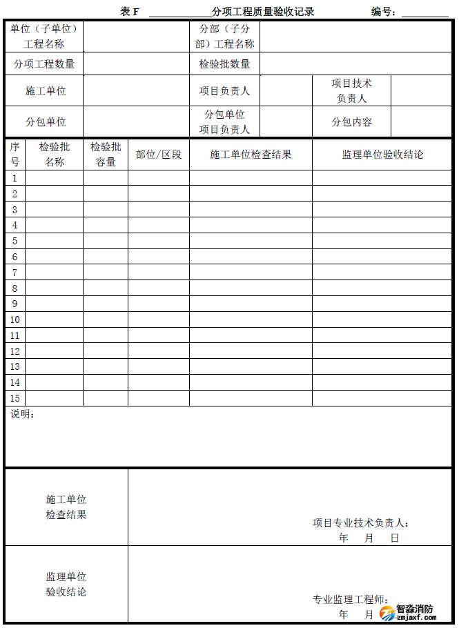 分項工程質(zhì)量驗收記錄可按《建筑工程施工質(zhì)量驗收統(tǒng)一標準》附錄F填寫。