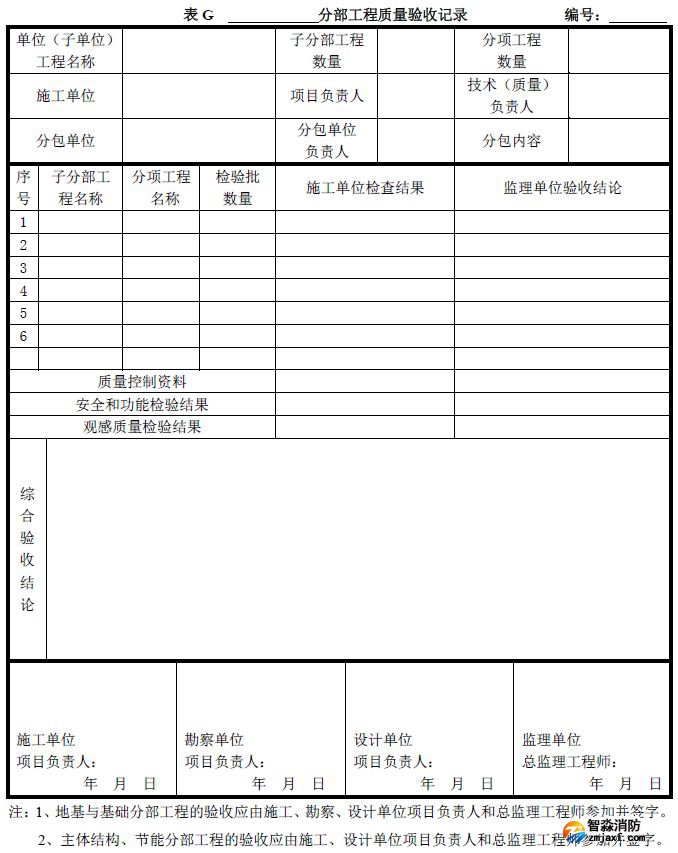 分部工程質(zhì)量驗收記錄可按《建筑工程施工質(zhì)量驗收統(tǒng)一標準》附錄G填寫。
