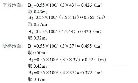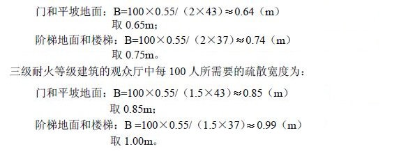 計(jì)算出一、二級(jí)耐火等級(jí)建筑觀眾廳中每100人所需要的疏散寬度分別為: