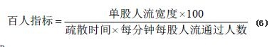 對(duì)于體育館觀眾廳的人數(shù)容量,表5.5.20-2中規(guī)定的疏散寬度指標(biāo),按照觀眾廳容量的大小分為三檔:(3000~5000)人、(5001~10000)人和(10001~20000)人。每個(gè)檔次中所規(guī)定的百人疏散寬度指標(biāo)(m),是根據(jù)人員出觀眾廳的疏散時(shí)間分別控制在3min、3.5min、4min來(lái)確定的。根據(jù)計(jì)算公式: