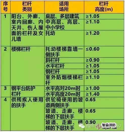 ❷間作安全防護欄桿時,其高度從露面算起應不低于1.05m(多層)和1.10m(高層)