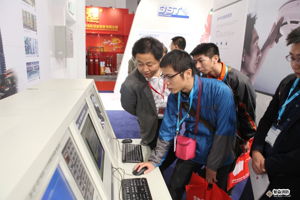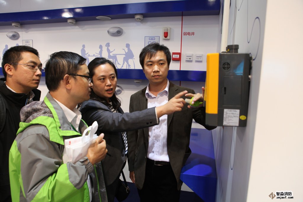 參觀者向技術(shù)人員了解海灣消防遠程監(jiān)控管理系統(tǒng)