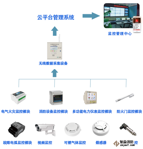 實(shí)現(xiàn)消防設(shè)施運(yùn)行及監(jiān)管的現(xiàn)代化必須構(gòu)建有效的的消防監(jiān)控物聯(lián)網(wǎng)系統(tǒng),采用消防自動(dòng)報(bào)警系統(tǒng)已有的各種感知設(shè)備、視頻采集設(shè)備等,將感知采集到的大量現(xiàn)場(chǎng)信息,借助消防物聯(lián)網(wǎng)傳輸?shù)较乐笓]中心,將過去封閉、功能單一的火災(zāi)報(bào)警系統(tǒng)改造為網(wǎng)格化、智能化的跨區(qū)域火災(zāi)報(bào)警綜合管理平臺(tái)。