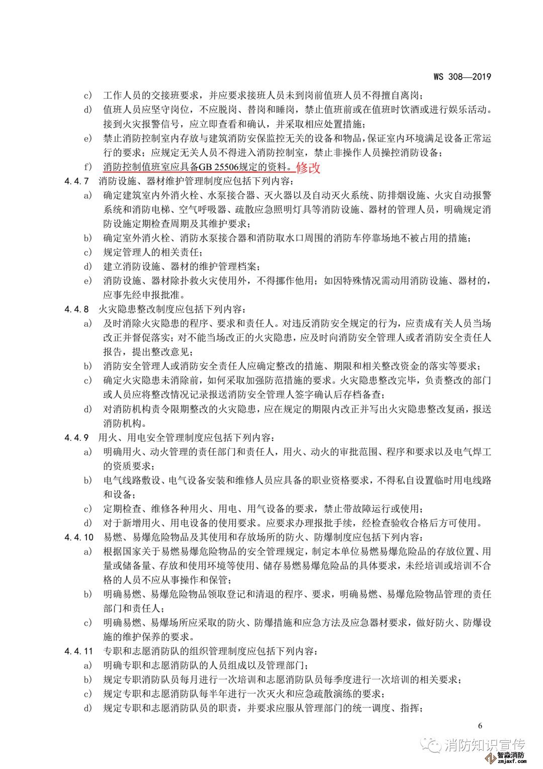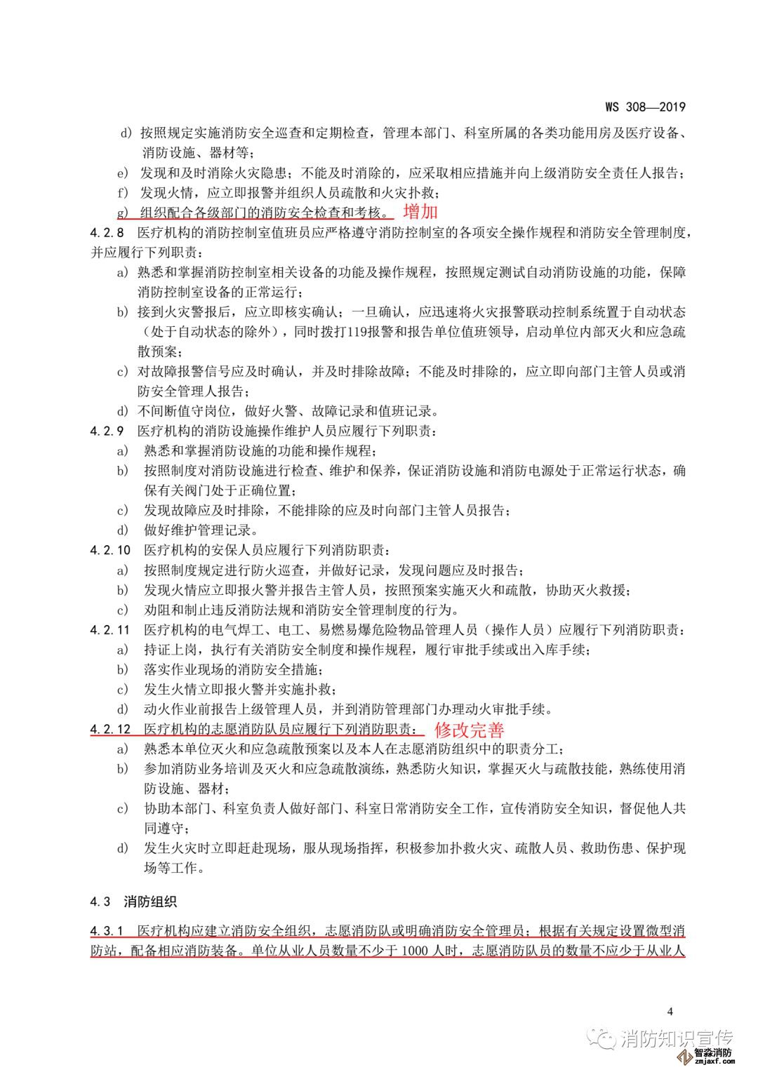 ——修改了各部門、科室的消防安全責(zé)任人的職責(zé)要求(見(jiàn)4.2.7, 2009年版的4.2.6);