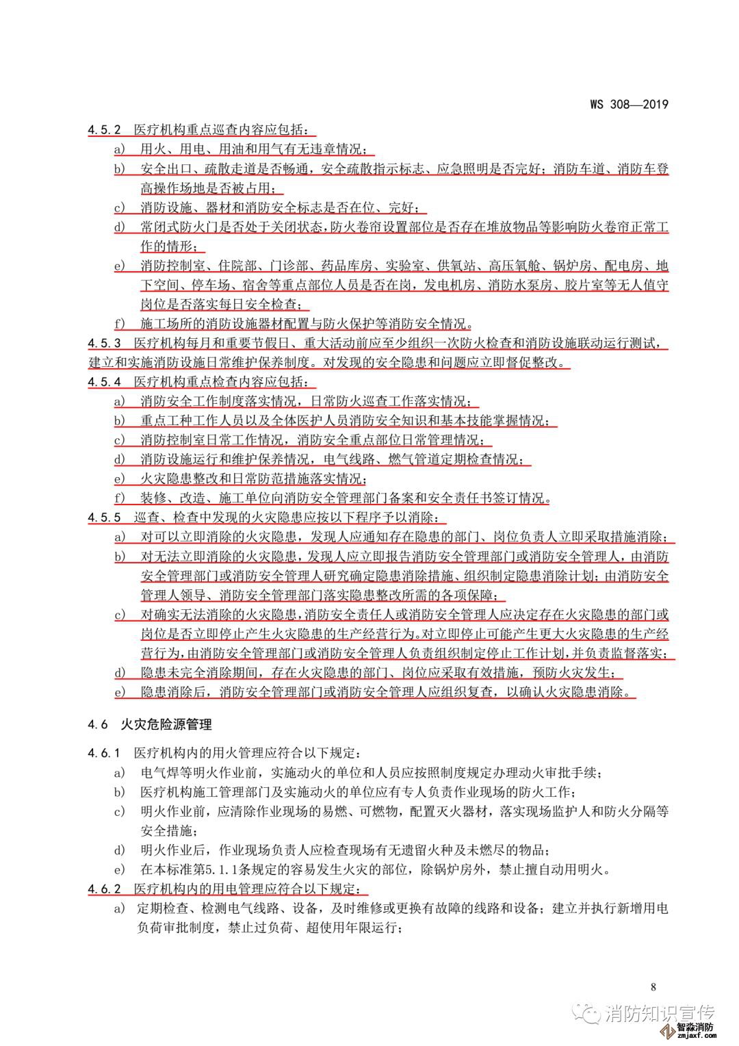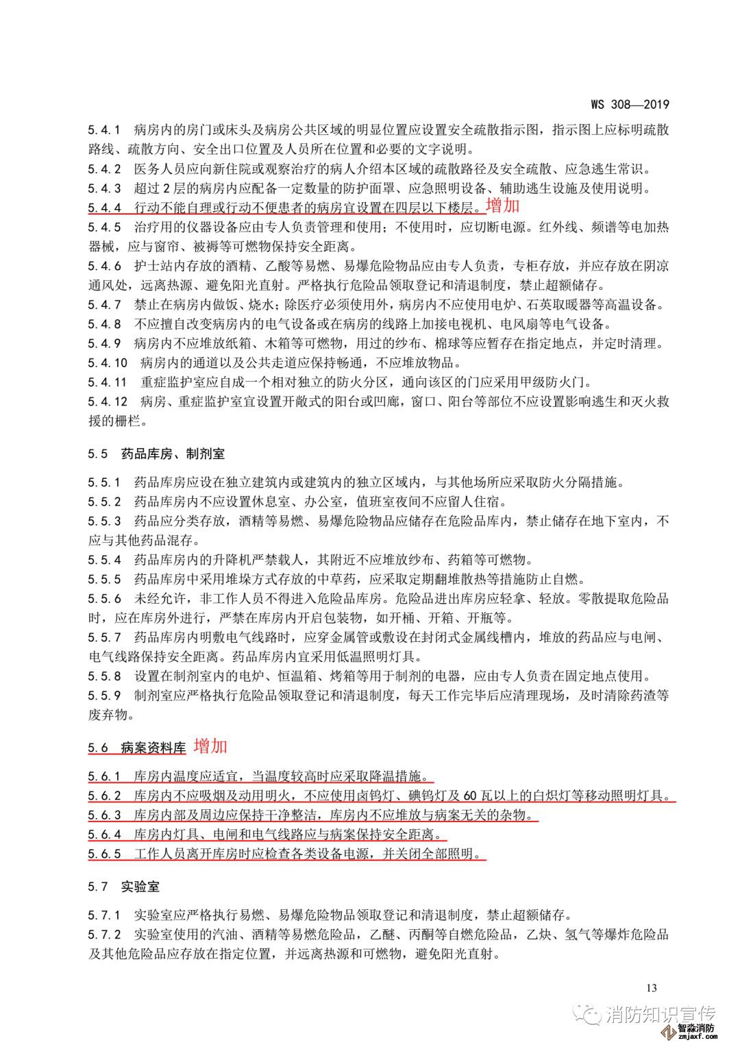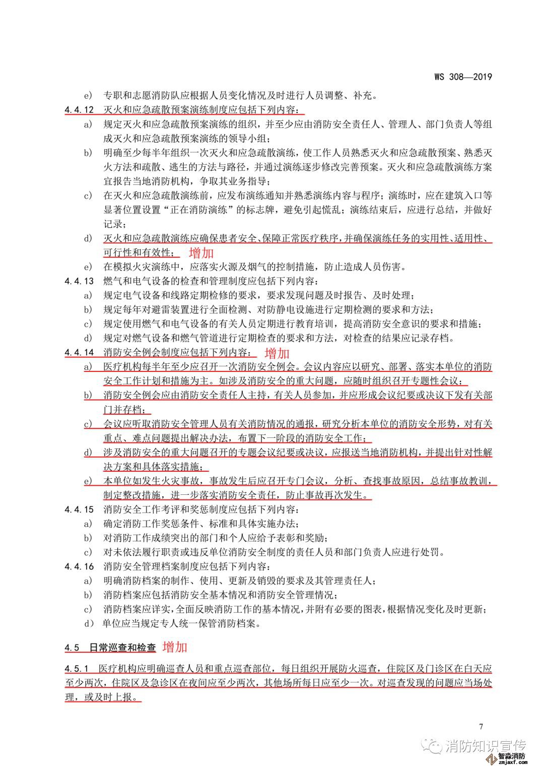 ——增加了屬于高危單位的醫(yī)療機(jī)構(gòu)開(kāi)展消防安全評(píng)估的要求(見(jiàn)4.1.14);