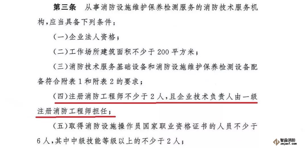 8月29日,應(yīng)急管理部發(fā)布《消防技術(shù)服務(wù)機(jī)構(gòu)從業(yè)條件》的通知,明確要求:從事消防設(shè)施維護(hù)保養(yǎng)檢測(cè)服務(wù)的消防技術(shù)服務(wù)機(jī)構(gòu),注冊(cè)消防工程師數(shù)量不少于2人,且企業(yè)技術(shù)負(fù)責(zé)人由一級(jí)消防工程師擔(dān)任。