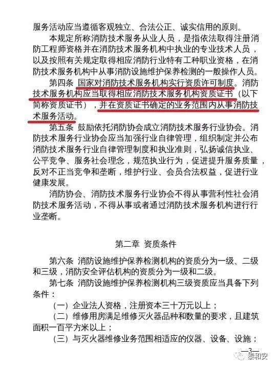 “ 取消消防設施維護保養(yǎng)檢測、消防安全評估機構(gòu)資質(zhì)許可制度,企業(yè)辦理營業(yè)執(zhí)照后即可開展經(jīng)營活動。”這是征求意見稿非常重要的一條。