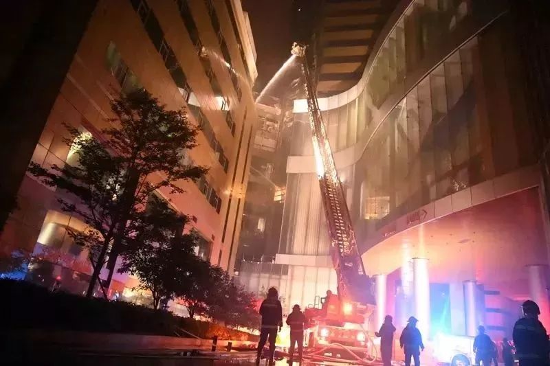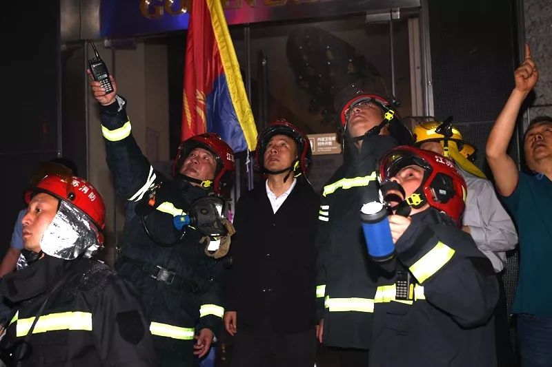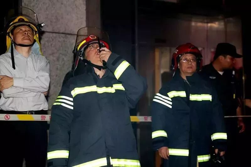 21時(shí)25分許,周詳總隊(duì)長(zhǎng)、梁新國(guó)政委到達(dá)現(xiàn)場(chǎng)。根據(jù)災(zāi)情現(xiàn)狀,周詳總隊(duì)長(zhǎng)要求:組織到場(chǎng)力量全力搜救被困人員;充分利用固定消防設(shè)施進(jìn)行內(nèi)攻滅火堵截;消防車??俊⑦B接大樓水泵接合器,確保建筑內(nèi)部消防管網(wǎng)壓力、流量不足情況下,滿足前方滅火需要;調(diào)派70米以上舉高車到場(chǎng)壓制外墻蔓延火災(zāi);參戰(zhàn)指戰(zhàn)員加強(qiáng)防護(hù)、編組作戰(zhàn),確保不發(fā)生人員傷亡。