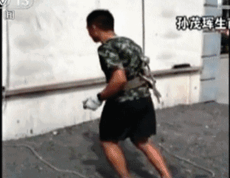 他依然是抱著水槍戰(zhàn)斗的姿勢!
