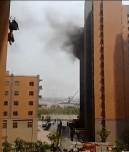 因現(xiàn)場濃煙多、能見度低