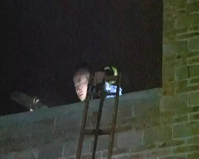 圖為楊科璋到達(dá)著火民房樓頂