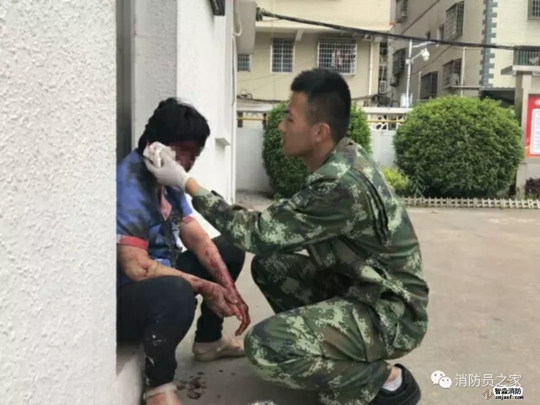 正在午休的消防員聞訊快速趕到事發(fā)現(xiàn)場,找到了全身鮮血淋漓蜷縮在路邊的保潔阿姨,為她擦拭血跡,并及時(shí)送往醫(yī)院。
