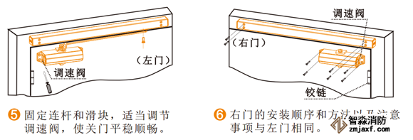 4) 確定好電動閉門器的安裝方向(拉門側(cè)或推門側(cè))安裝閉門器滑槽及液壓缸;